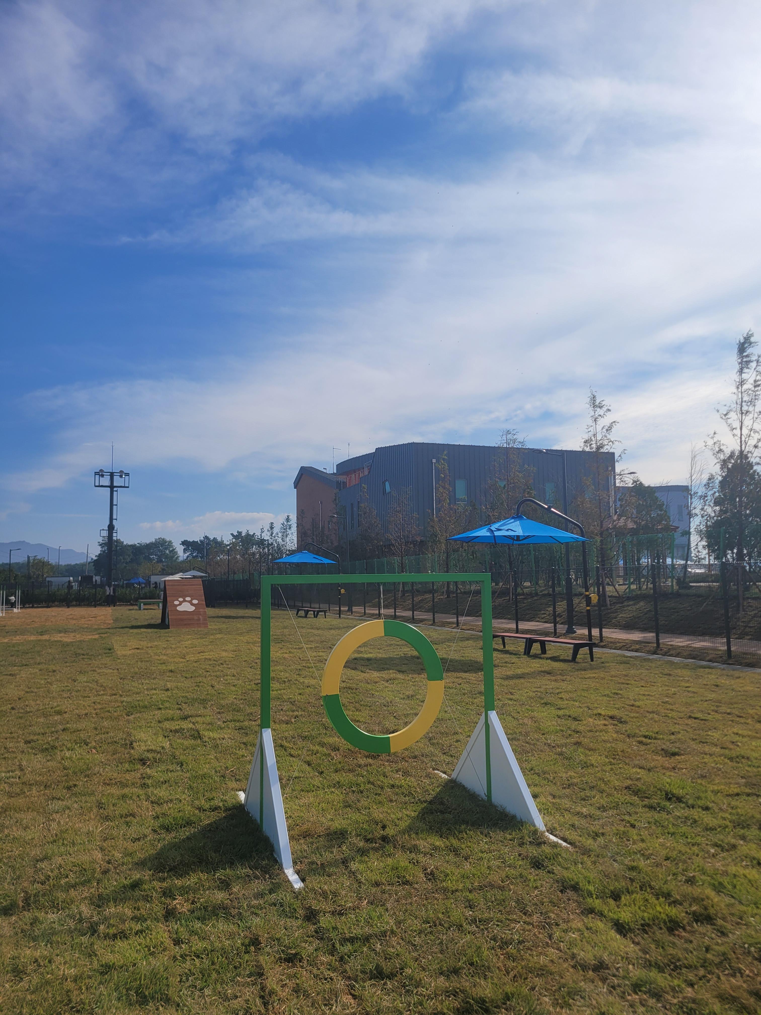 산책을 하던 중 행사를 준비하는 곳이 있길래 궁금해서 가까이 가보았다. 가보니 반려동물 놀이터: 무안으로 오개 준공 기념 행사 준비 중이었다. 안으로 들어갈 수 있길래 살포시 들어가서 구경해 보았다.
