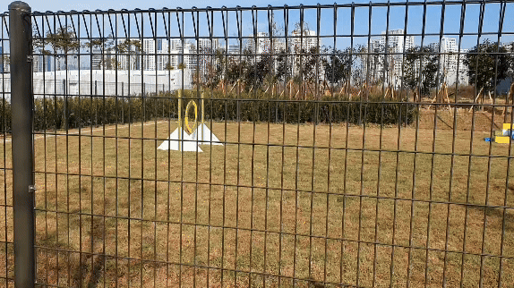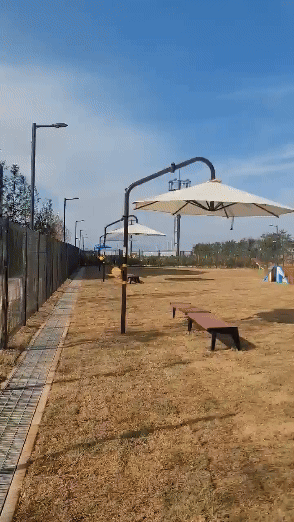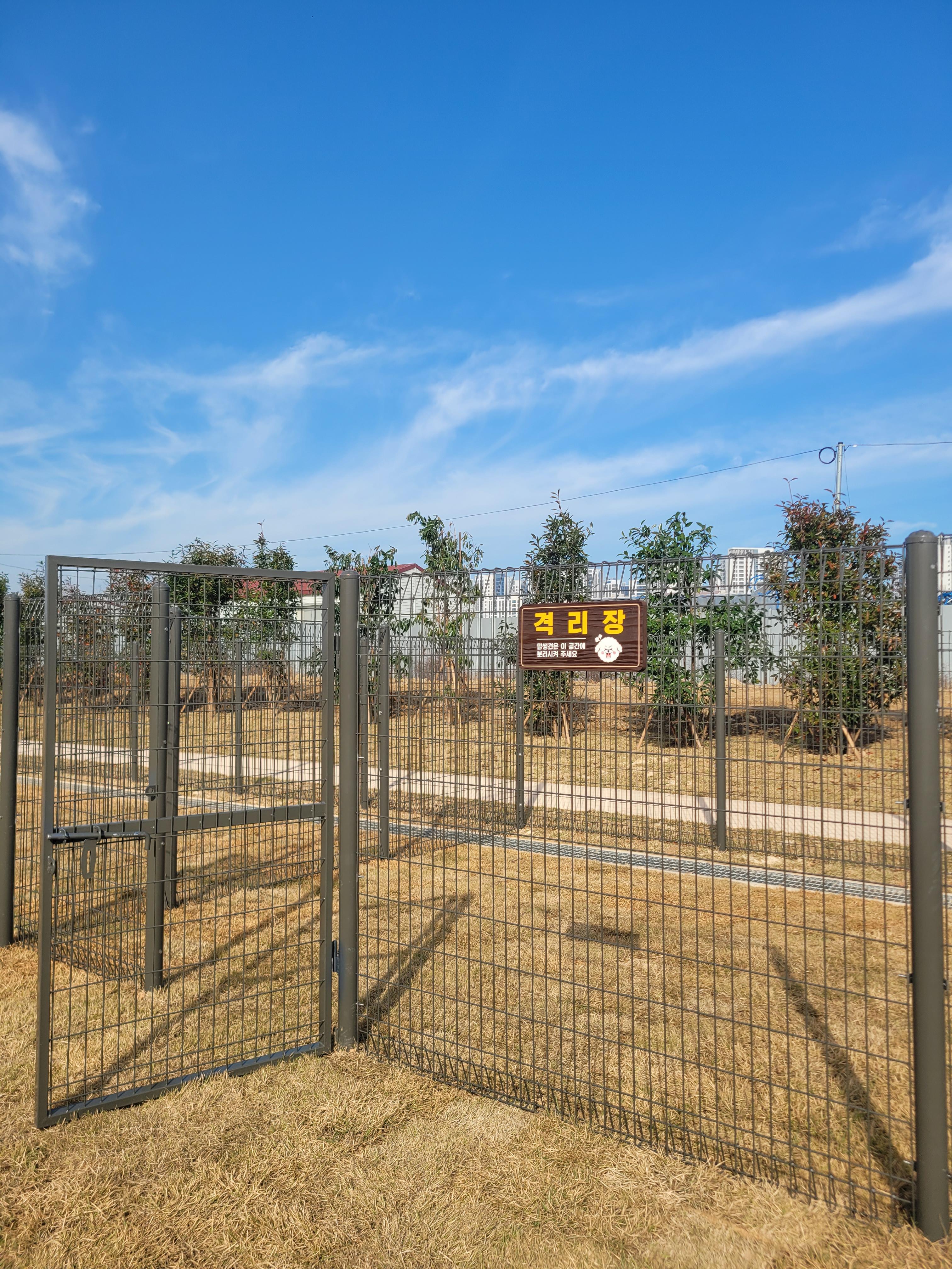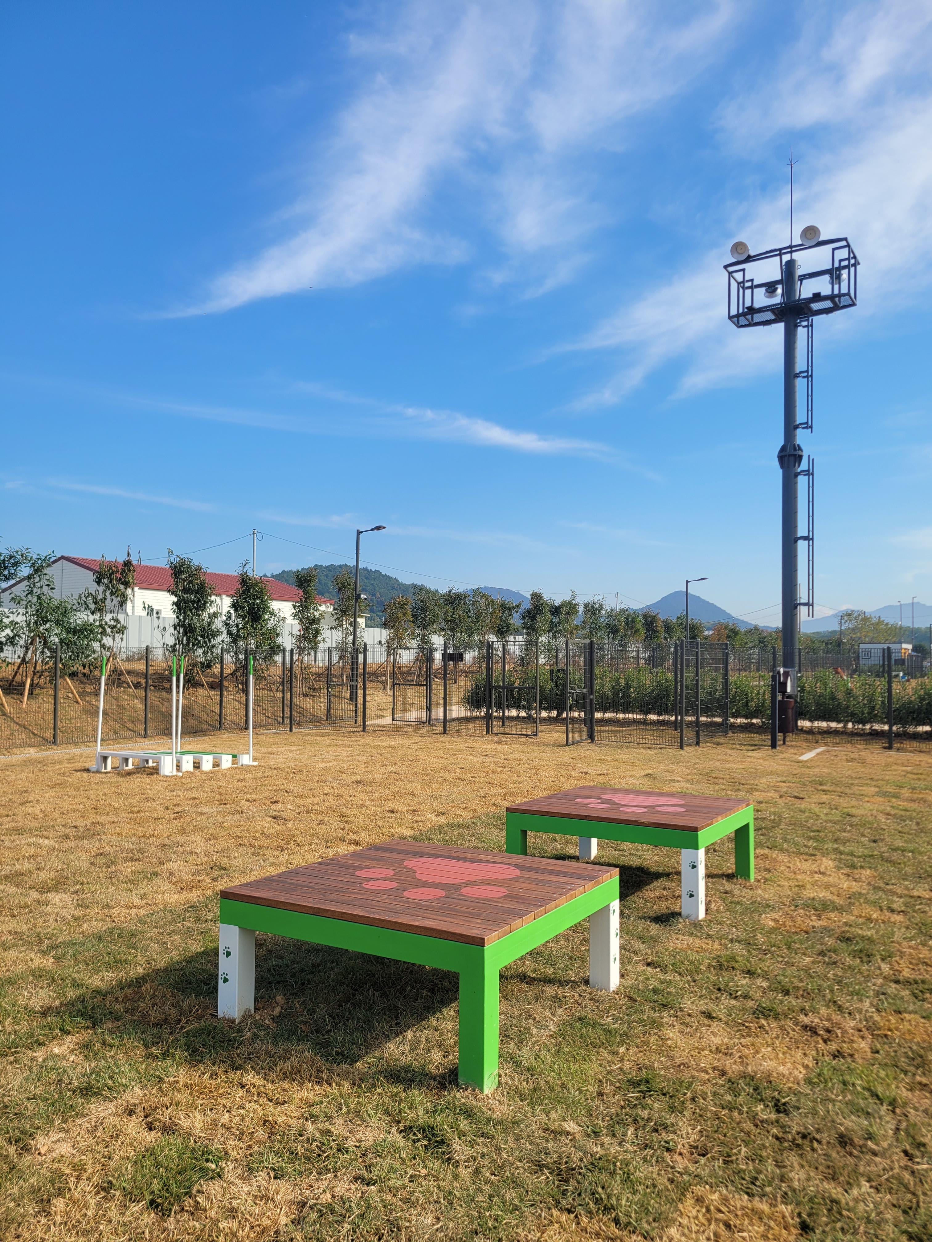 놀이터 안에는 견주가 쉴 수 있는 벤치와 파라솔, 강아지들이 놀 수 있는 다양한 놀이시설, 그리고 음수대와 배설물 쓰레기통도 설치되어 있었다. 격리장도 따로 있었는데 흥분한 강아지들을 분리할 수 있는 공간 같았다.