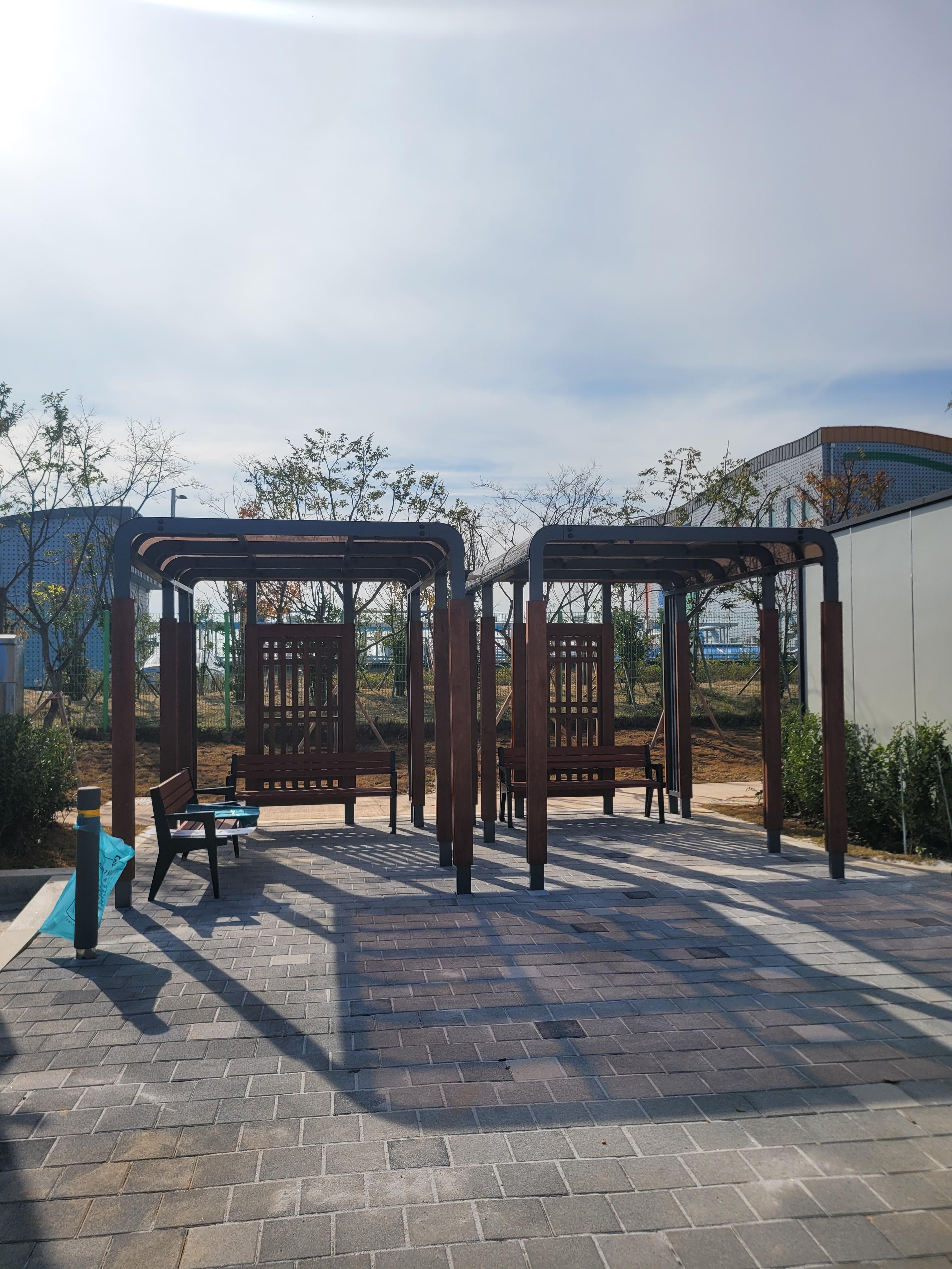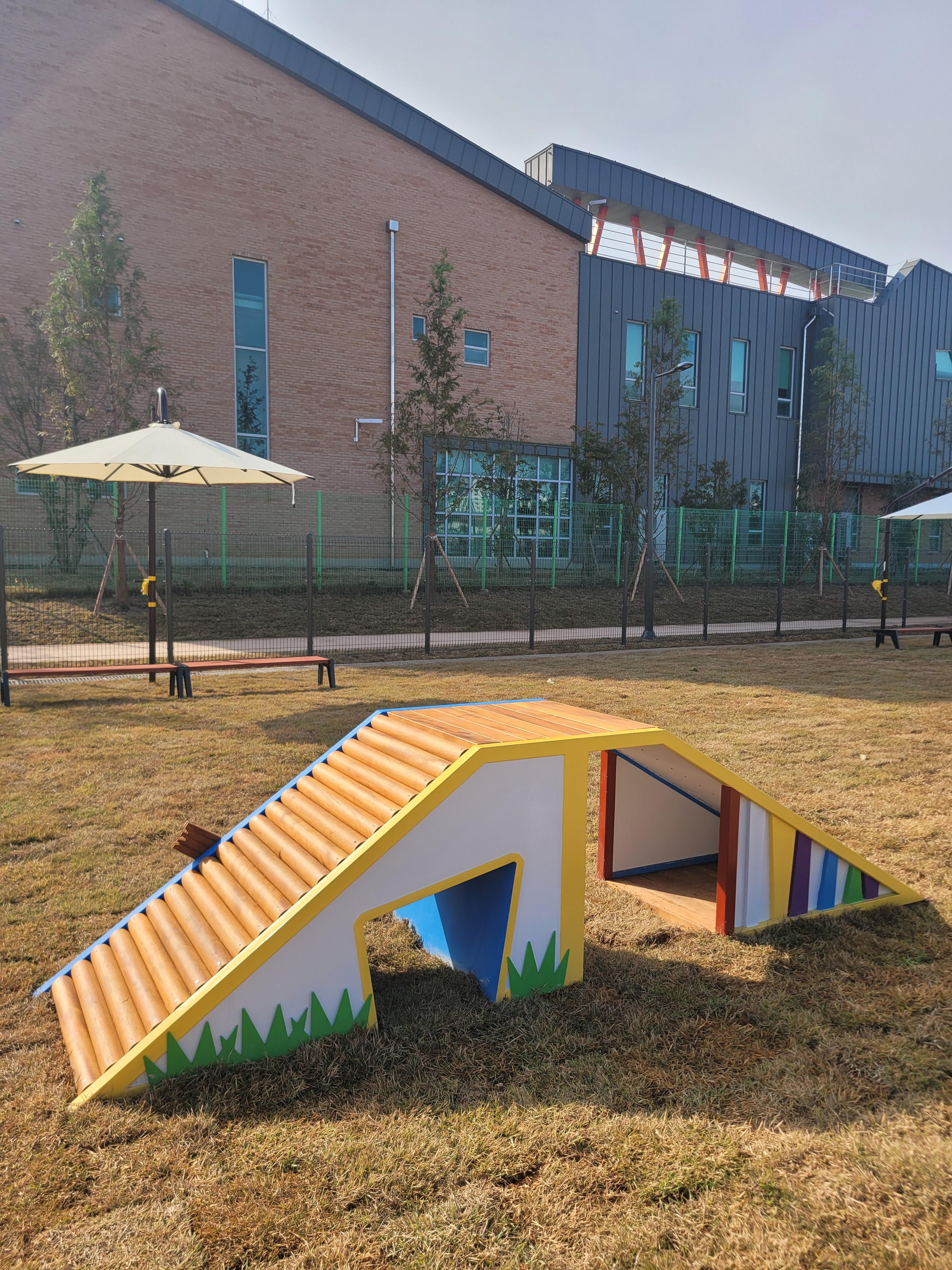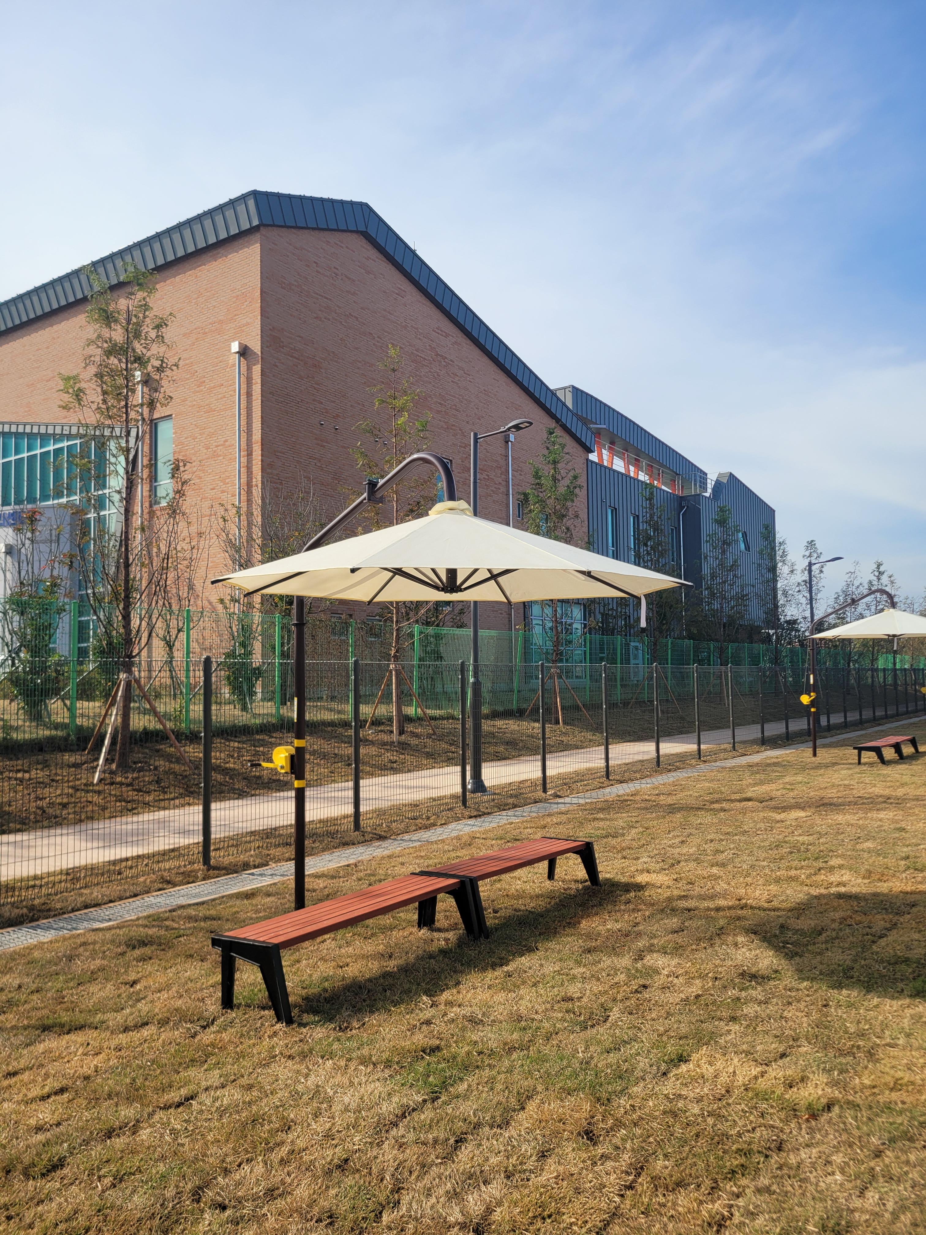 놀이터 안에는 견주가 쉴 수 있는 벤치와 파라솔, 강아지들이 놀 수 있는 다양한 놀이시설, 그리고 음수대와 배설물 쓰레기통도 설치되어 있었다. 격리장도 따로 있었는데 흥분한 강아지들을 분리할 수 있는 공간 같았다.